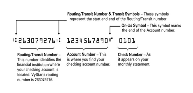 The VyStar routing number: 263079276